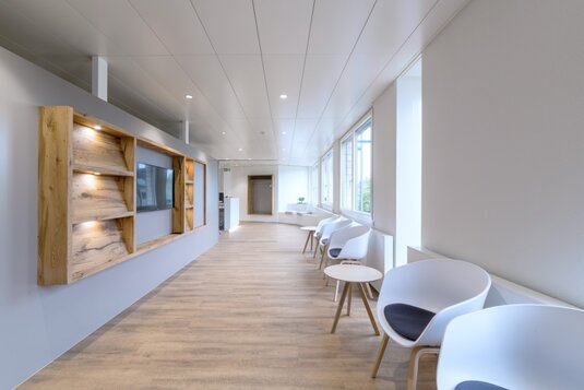 Bei seinem Projekt war die Herausforderung der zeitliche Ablauf. Seine Zeitvorgabe waren äusserst knapp, da wir zuerst ein Umnutzungsgesuch bei der Stadt Solothurn eingeben mussten. Dank dem Goodwill der Stadt Solothurn konnten wir bereits nach sechs Wochen mit dem Umbau beginnen, der sechs Wochen dauerte. Leider hatten wir noch mit Asbest im Gebäude zu tun, was uns Zeit kostete. Bei der Gestaltung der Praxis liess er uns freie Hand und wir konnten ihm mittels skizzierten Ideen unsere Ideen aufzeigen und das nun gezeigte Projekt unkompliziert planen und umsetzen.